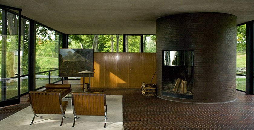 Modernista relutante, Frank Lloyd Wright, ao visitar a casa teria dito, com uma certa dose de sarcasmo: ’Aqui estou eu Philip. Já estou dentro de casa ou continuo no jardim? Devo tirar meu chapéu ou mantê-lo na cabeça?’